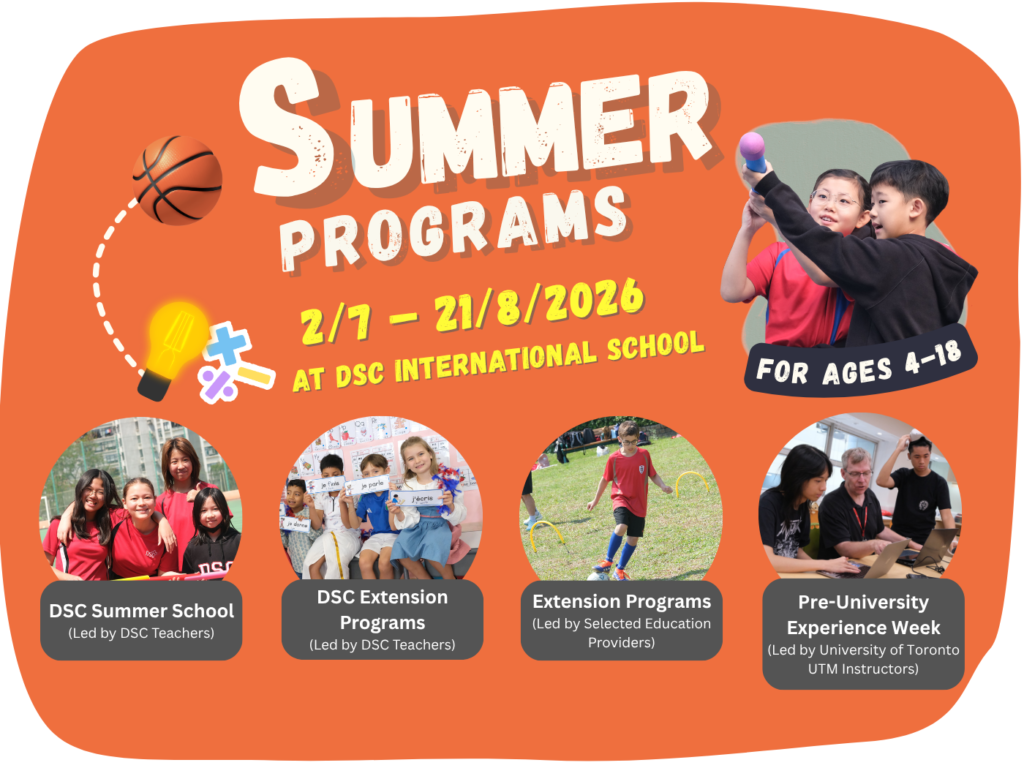 DSC offers a wide range of Summer Programs for students ages 4 – 18. The Summer Programs will run from July 2 to August 21 at our convenient campus in Tai Koo, with a variety of options to fit everyone’s holiday schedule: 1-Month, 3-Week, 2-Week, and 1-Week. All Programs are open to the Public.